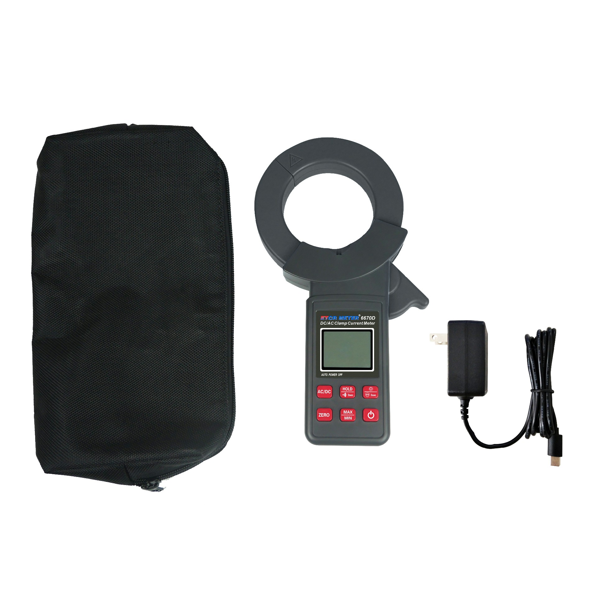 ETCR EM6670D Large Caliber DC/AC Clamp Current Meter with DC/AC true RMS measurement, maximum value / minimum value / average value and other test functions. The meter with data hold function, Bluetooth communication function, equipped with large capacity rechargeable lithium battery and type-c charging port, which is new type essential tool for electrical safety testing.