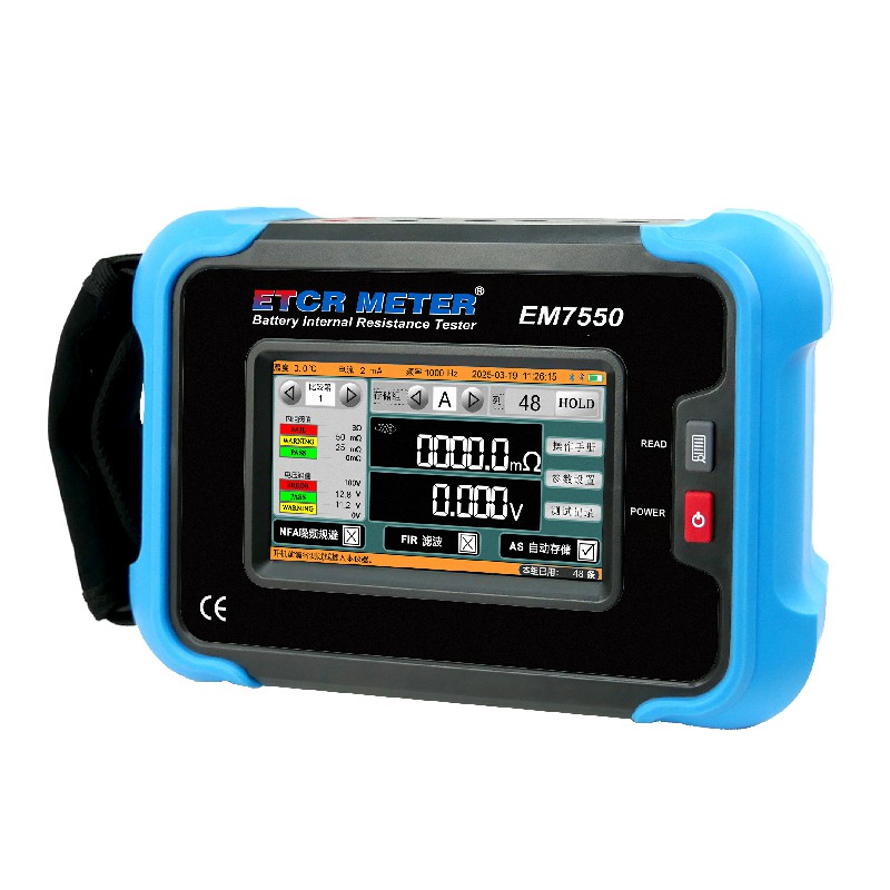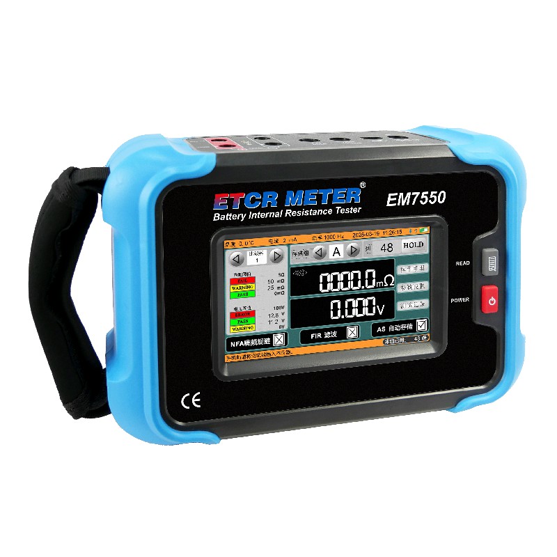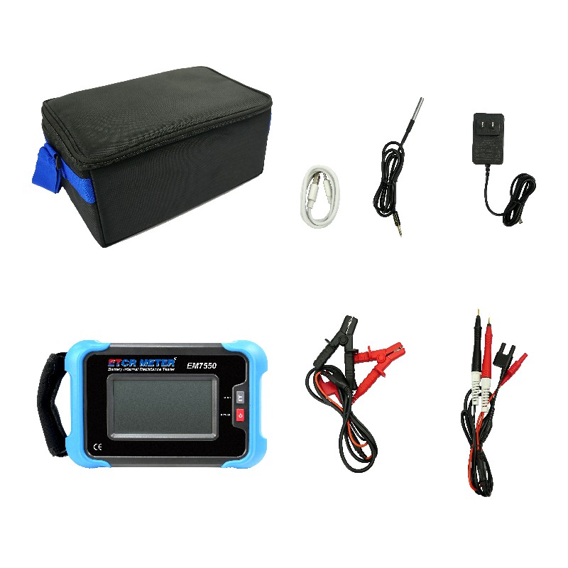 The ETCR EM7550 battery internal resistance tester, also known as a rechargeable battery tester or battery tester, is used to measure the internal resistance, voltage, and temperature of lead-acid, nickel-cadmium, nickel-metal hydride, and lithium batteries to