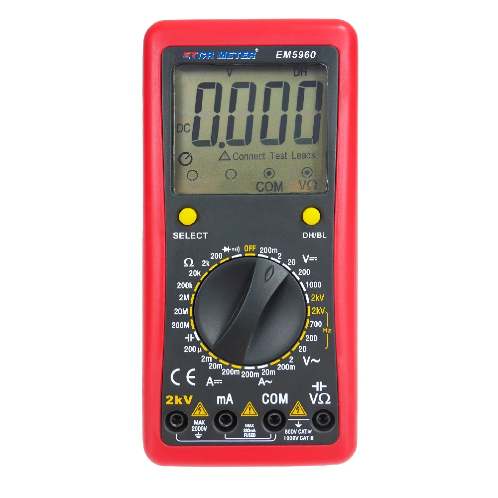 ![]() | ETCR EM5960 Digital Voltmeter | AC/DC 2000V | AC/DC 200mA | 20MΩ | 2mF | -- | -- |