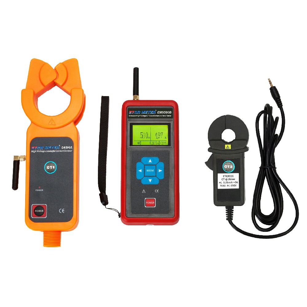 ETCR EM9500B Wireless High Voltage CT Turn Ratio Tester, also known as transformer current variable ratio tester, transformer ratio difference tester, current transformer variable ratio tester, is used for primary current, secondary current size, variable ratio, phase difference, polarity judgment of current transformers below 35kV.It is widely used in substations, power plants, power inspection departments, industrial and mining enterprises, testing stations, electrician maintenance departments for current detection, anti-theft and field electrician operations.