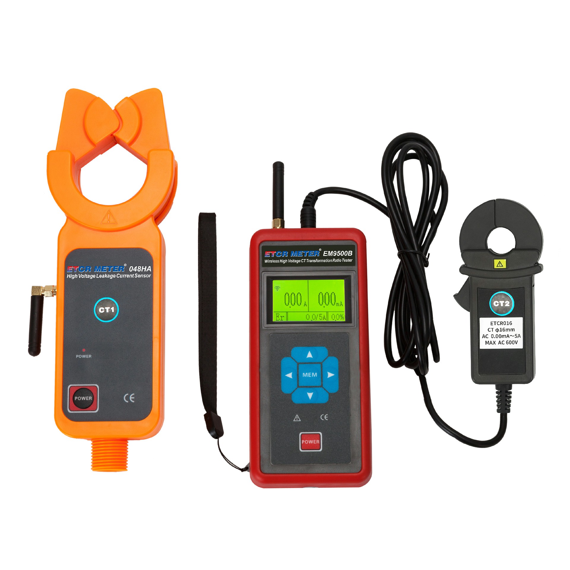 | ETCR EM9550B Wireless High/Low Voltage CT Turn Ratio Tester | ≤35kV | 0.0A ~800A /3000A | 0.00mA~5A | 100m | 1~9999 | Yes | ||