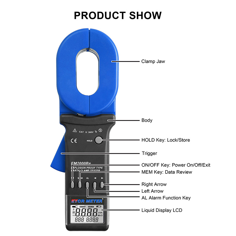 ETCR EM2000B+ Explosion Proof Clamp Earth Resistance Tester, also known as explosion proof earth resistance tester and explosion proof clamp type earth resistance tester, which is used for measurement of earth resistance, loop resistance, and grounding fault judgment.