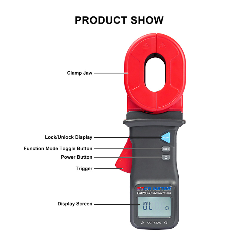 ETCR EM2000C Clamp Earth Resistance Tester, also known as clamp type earth resistance tester, earth resistance tester, loop resistance tester, single clamp earth resistance tester, which is used for measurement of earth resistance, loop resistance, and grounding fault judgment.