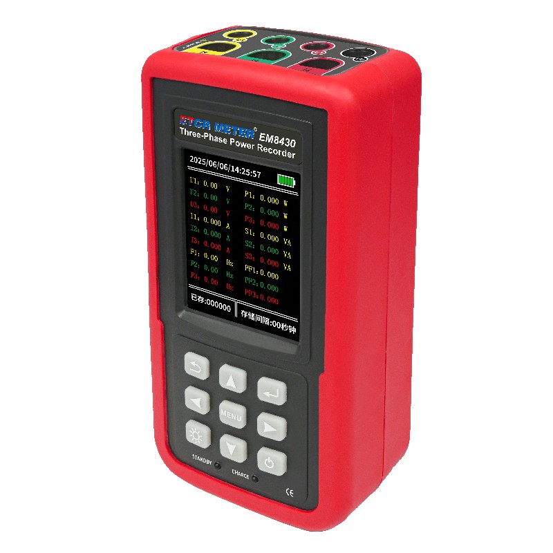 The ETCR EM8400 single-phase power recorder is used to monitor and record the operating voltage, current, frequency, and power of a single-phase power source over a period of time. It supports two input channels (one voltage and one current) and can be connected to a computer via USB to download the recorded results for data storage and analysis. The recorder consists of a main unit, current clamp, power adapter, communication cable, and data upload software. It can be widely used for fault diagnosis and line maintenance in 380/220V power systems, providing electrical inspectors with a safe, accurate, and convenient power instrument.