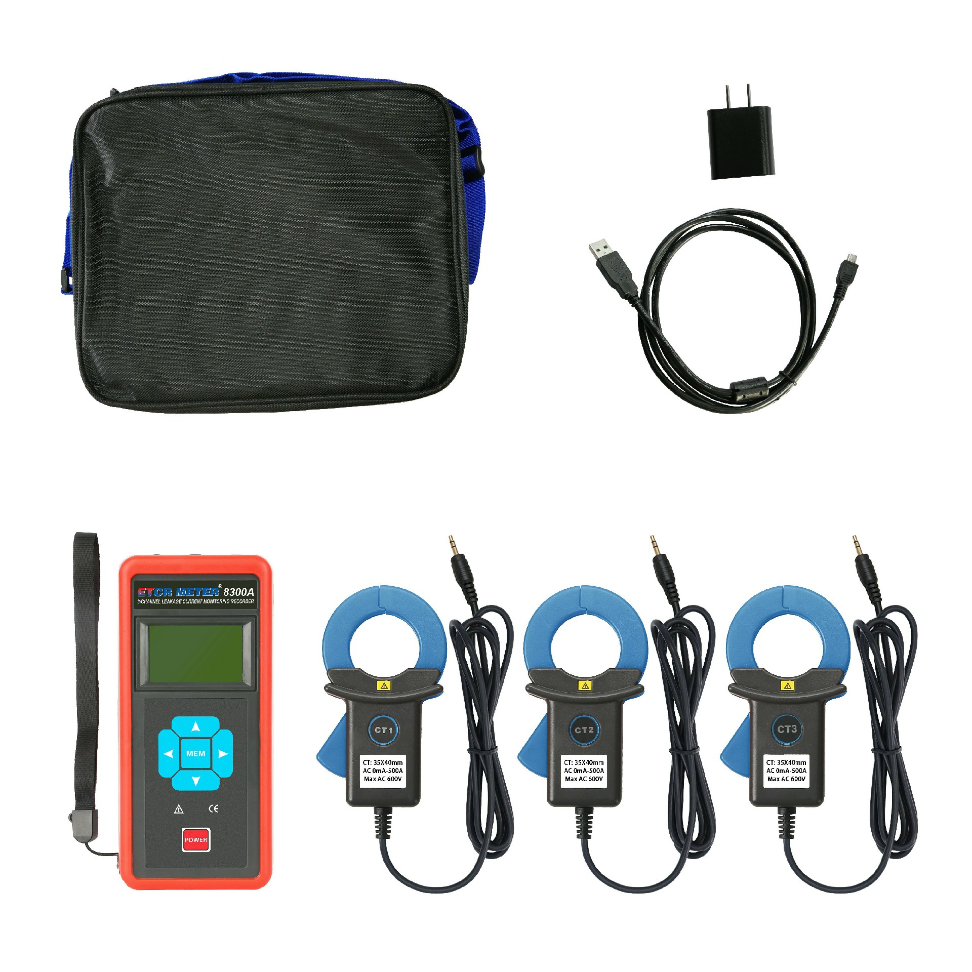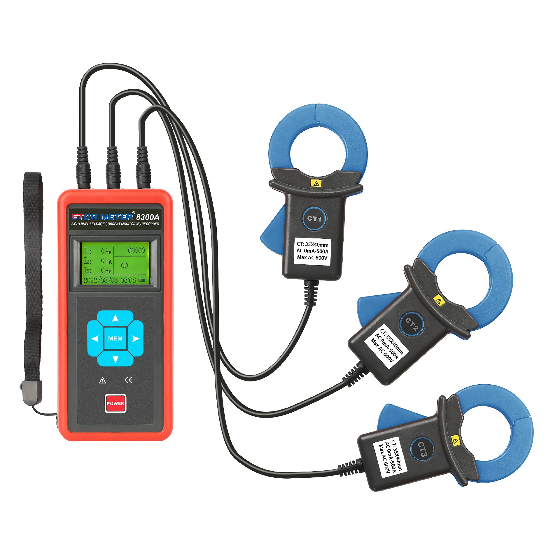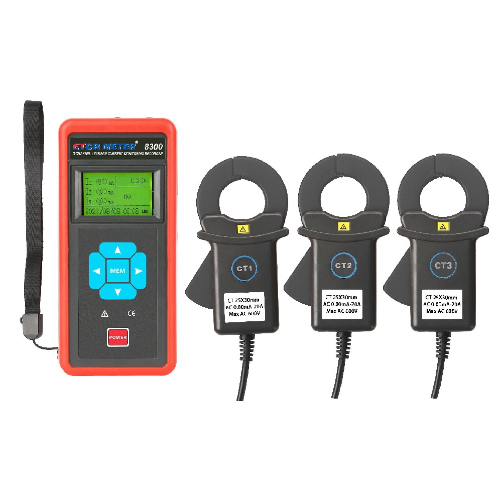 ETCR EM8300A Three Channel Clamp Current Monitoring Recorder, also known as leakage current recorder and multi-channel current recorder, is used for on-site online simultaneous monitoring and recording of 1 to 3 AC currents or leakage currents, fault finding, and line maintenance.The instrument consists of a recorder host, a current clamp, a charger, data upload software, a communication line, etc., and can be widely used in 380/220V power systems to provide safe, accurate and convenient power instruments for power inspectors.