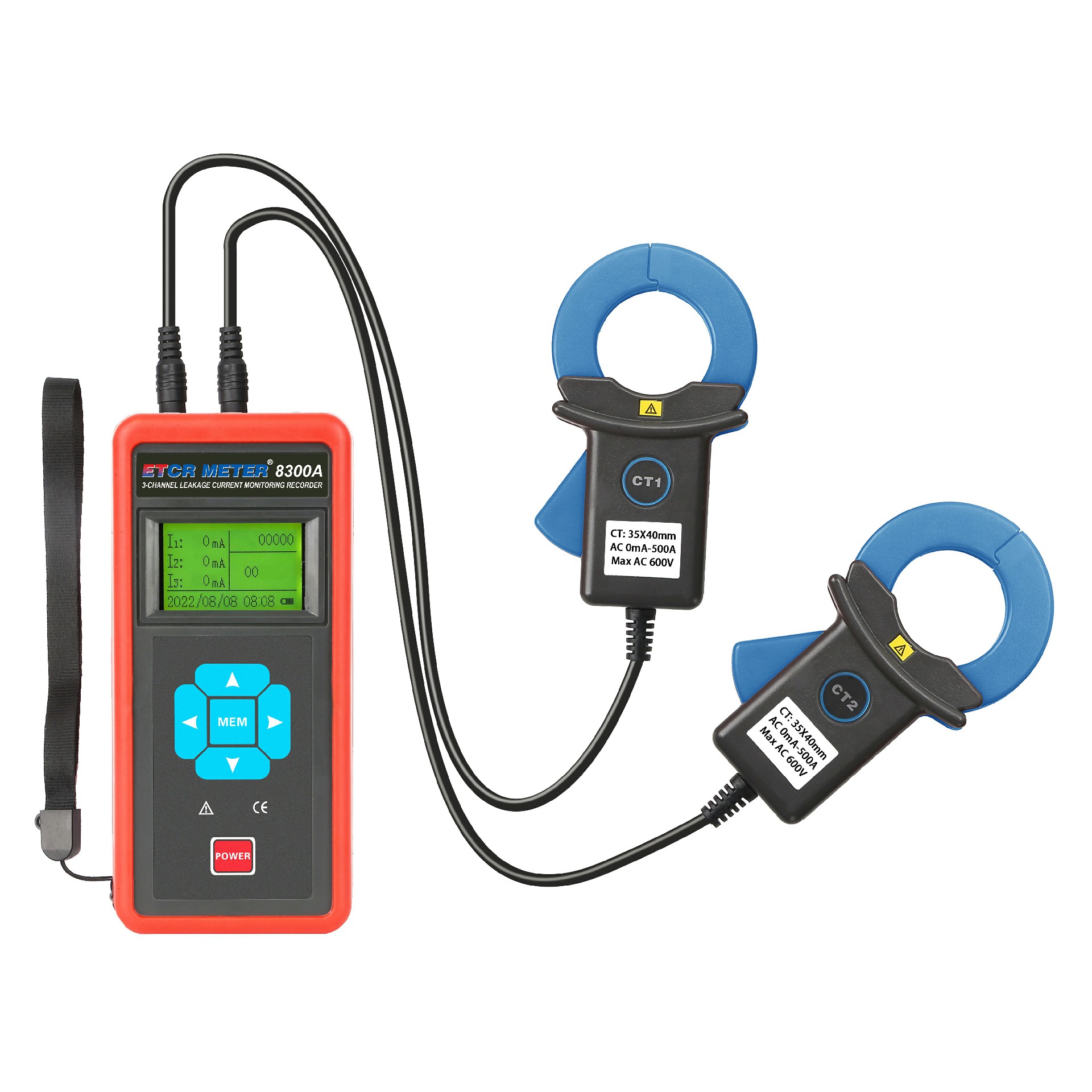 The host of the ETCR8300A Three Channel Clamp Current Monitoring Recorder adopts LCD display, and the three channels are displayed on the same screen, which is clear at a glance. There are two options for Chinese operation interface and English operation interface, which are suitable for engineers and technicians in different countries.The recorder uses a large-capacity rechargeable lithium battery, and the battery life can continue to record for up to 7 days.It has a system clock function and large storage space, can set the monitoring and recording time on site, can store 200,000 sets of data, has an automatic storage interval setting function, and the recording period is set from 1 second to 99 minutes.Equipped with a USB communication interface, the data upload software has the functions of reading, reviewing, saving, and reporting historical data.