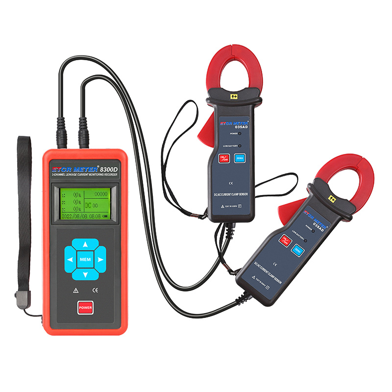 ETCR EM8300D three-channel DC/AC current recorder, also known as multi-channel current recorder, is used for on-site on-line simultaneous monitoring and recording of 1 to 3-channel DC or AC currents, fault finding, line maintenance. The instrument consists of recorder mainframe, current clamp, charger, data upload software, communication line, etc. It can be widely used in 380/220V power system, providing safe, accurate and convenient power instruments for power inspectors.